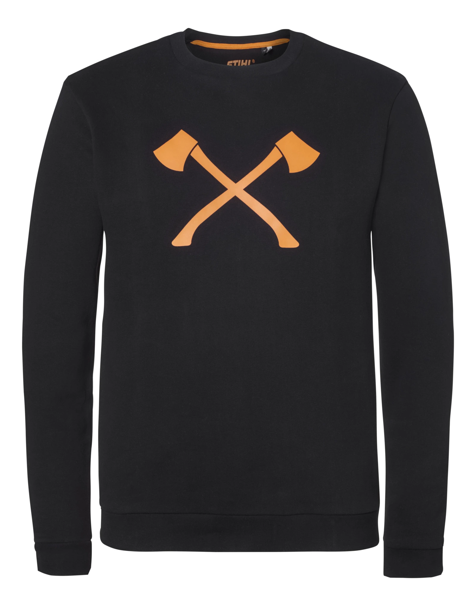 Χρώμα μαύρο, 100 % βαμβάκι, τραχιά εσωτερική πλευρά, στάμπα «AXE» στην μπροστινή πλευρά και στάμπα «STIHL TIMBERSPORTS®» στην πλάτη, εσωτερικό ρέλι λαιμόκοψης σε πορτοκαλί χρώμα.
