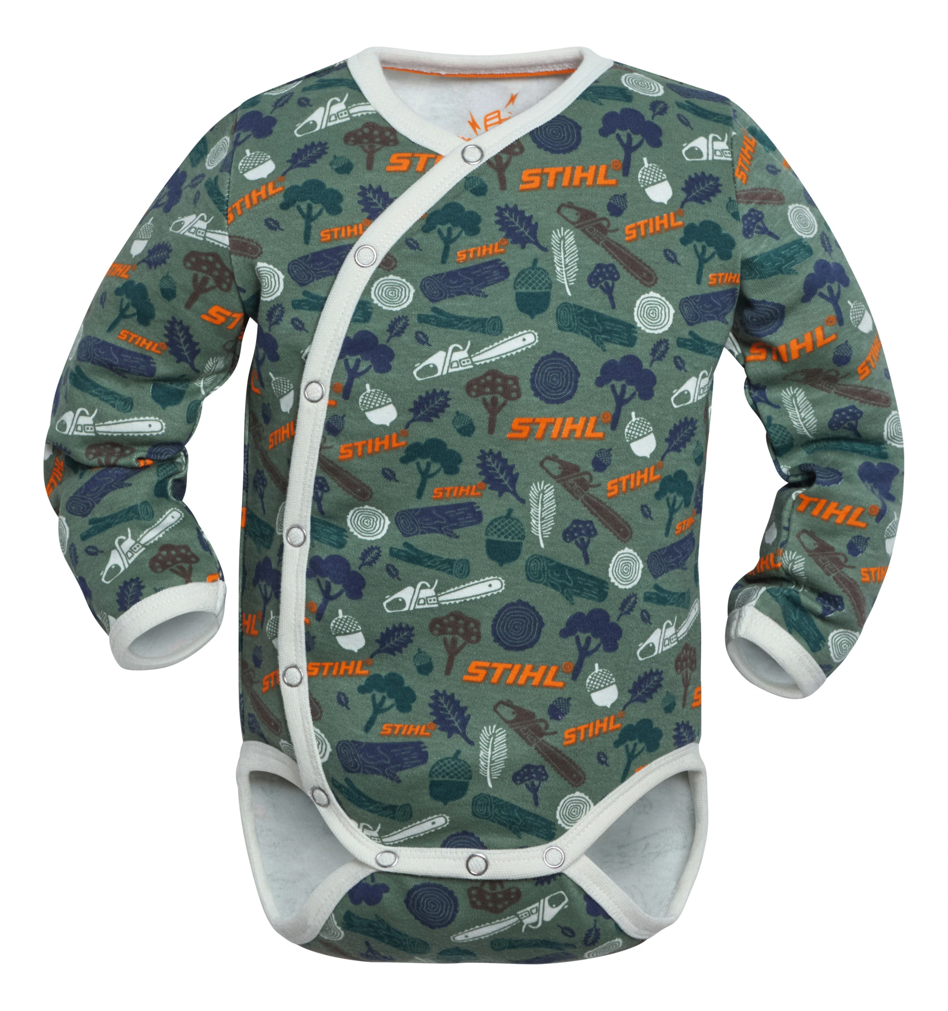 Χρώμα: πράσινο, μπλε, πορτοκαλί και καφέ. 100 % βαμβάκι, τζέρσεϊ, σχέδιο παραλλαγής με αλυσοπρίονο, λογότυπος STIHL και διάφορα θέματα από τη φύση, κούμπωμα με κόπιτσες.