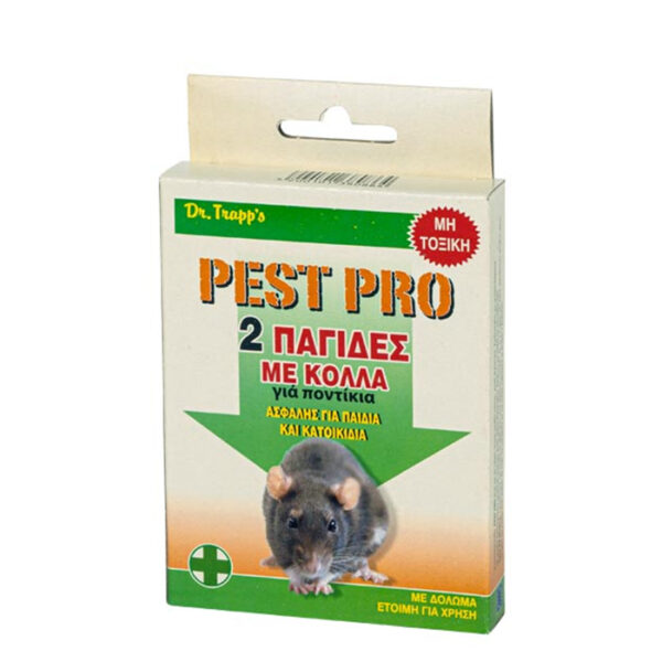 Ποντικοπαγίδες με κόλλα. Μεγάλη διάρκεια και εγγυημένο αποτέλεσμα. Άοσμες κόλλες και χωρίς τοξικά. Έτοιμες για χρήση με σπόρους τοποθετημένους στο κέντρο της κάθε παγίδας. Παγιδεύουν τρωκτικά χωρίς χρήση δηλητηρίων. Παγιδεύουν επίσης σαύρες, έντομα, μικρά φίδια κ.α.