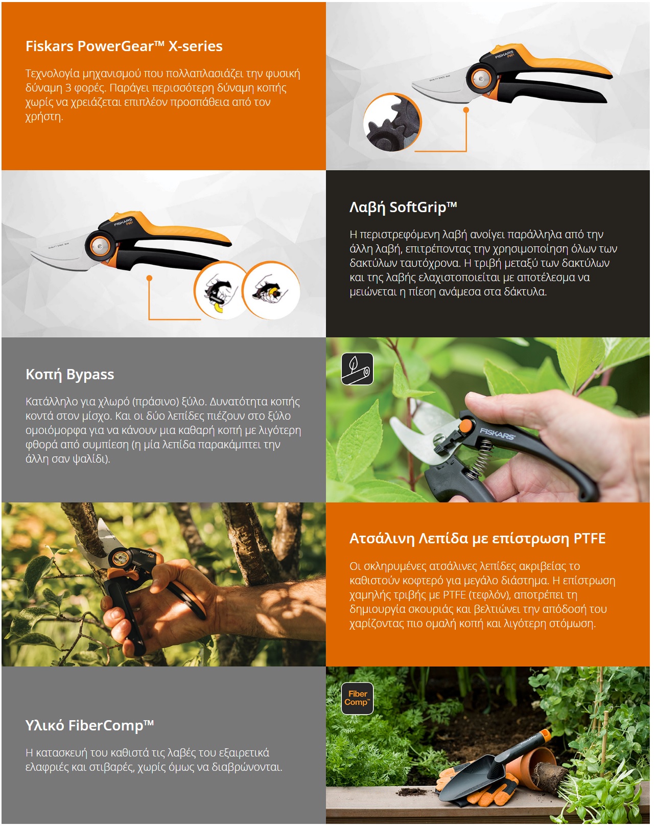 • Eργονομικά σχεδιασμένη λαβή FiberComp™ που ταιριάζει στο φυσικό σχήμα του χεριού και διαθέτει λεπτομέρειες SoftGrip™ για ασφαλές και άνετο πιάσιμο