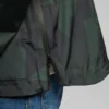 Πράσινο μπουφάν βροχής με εμφάνιση καμουφλάζ, με μεμβράνη TPU, στήλη ύδατος 5.000 mm και καλό αερισμό. Μπουφάν με σχεδιασμό πουλόβερ με φαρδύ λαιμό και πλαϊνό φερμουάρ, για να είναι εύκολο το τράβηγμα του ρούχου. Οι ραφές είναι επικαλυμμένες και τα μανίκια μπορούν να σφίγγουν επιπλέον με Velcro για να κρατούν τη βροχή μακριά. Η πρακτική μεγάλη μπροστινή τσέπη μπορεί να χρησιμοποιηθεί για την ασφαλή μεταφορά κλειδιών, κινητού τηλεφώνου, πορτοφολιού κ.λπ. στη βροχή. Στο αριστερό μανίκι υπάρχει μια μικρή υφαντή ετικέτα “LEGENDARY PERFORMANCE”.